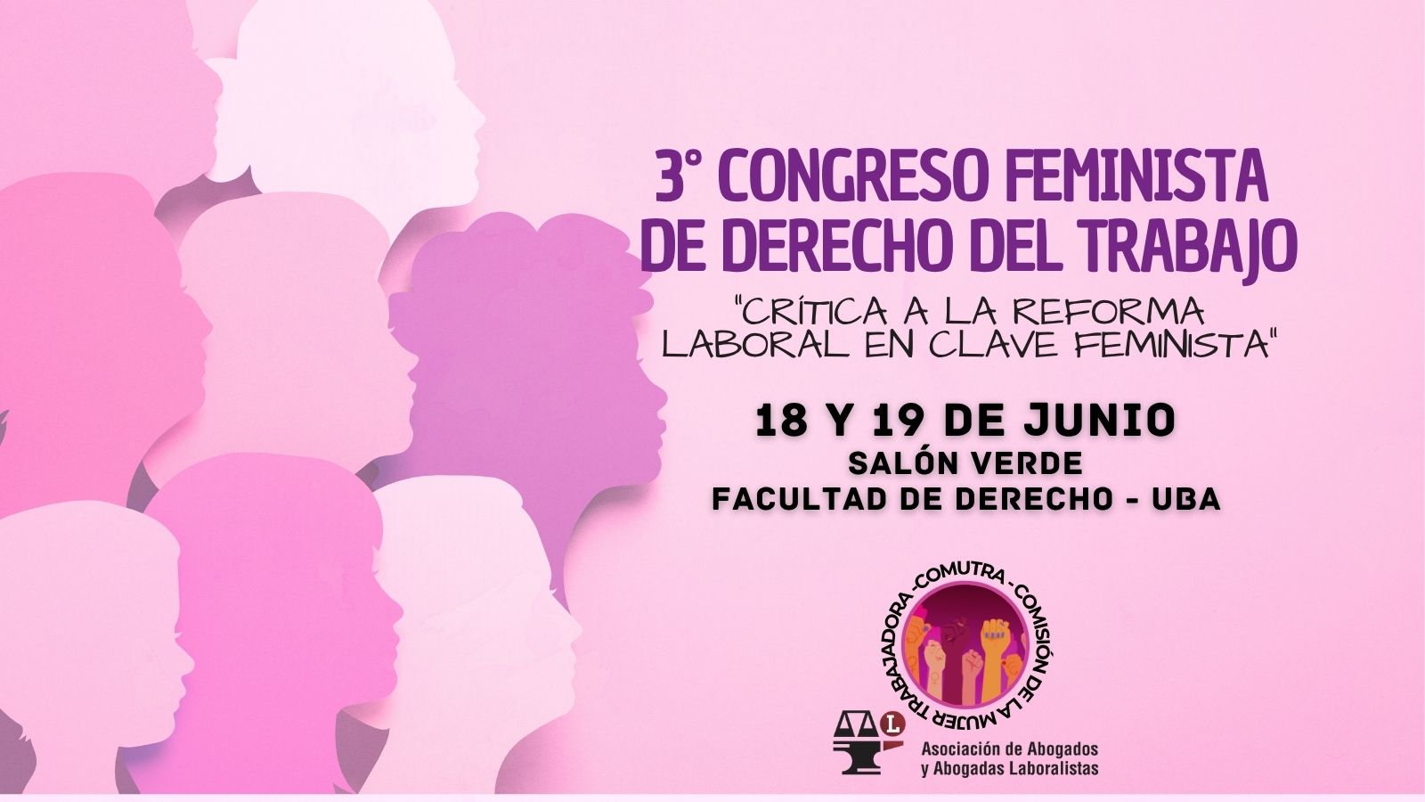 La Comisión de la Mujer Trabajadora (Co.Mu.Tra) de la Asociación de Abogados y Abogadas Laboralistas informa que ya está abierta la inscripción para participar del 3° Congreso Feminista de Derecho del Trabajo que llevará el lema: «Crítica a la Reforma Laboral en clave feminista».