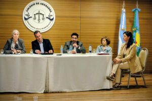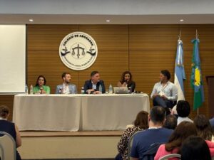 Luego fue el turno del Taller sobre «Trabajo de cuidados. Opinión consultiva 31 de la CIDH», cuyas expositoras fueron: Agustina Karakachoff (La Plata); Cynthia Benzion (Ciudad de Buenos Aires) y Graciela Giuzio (Uruguay).